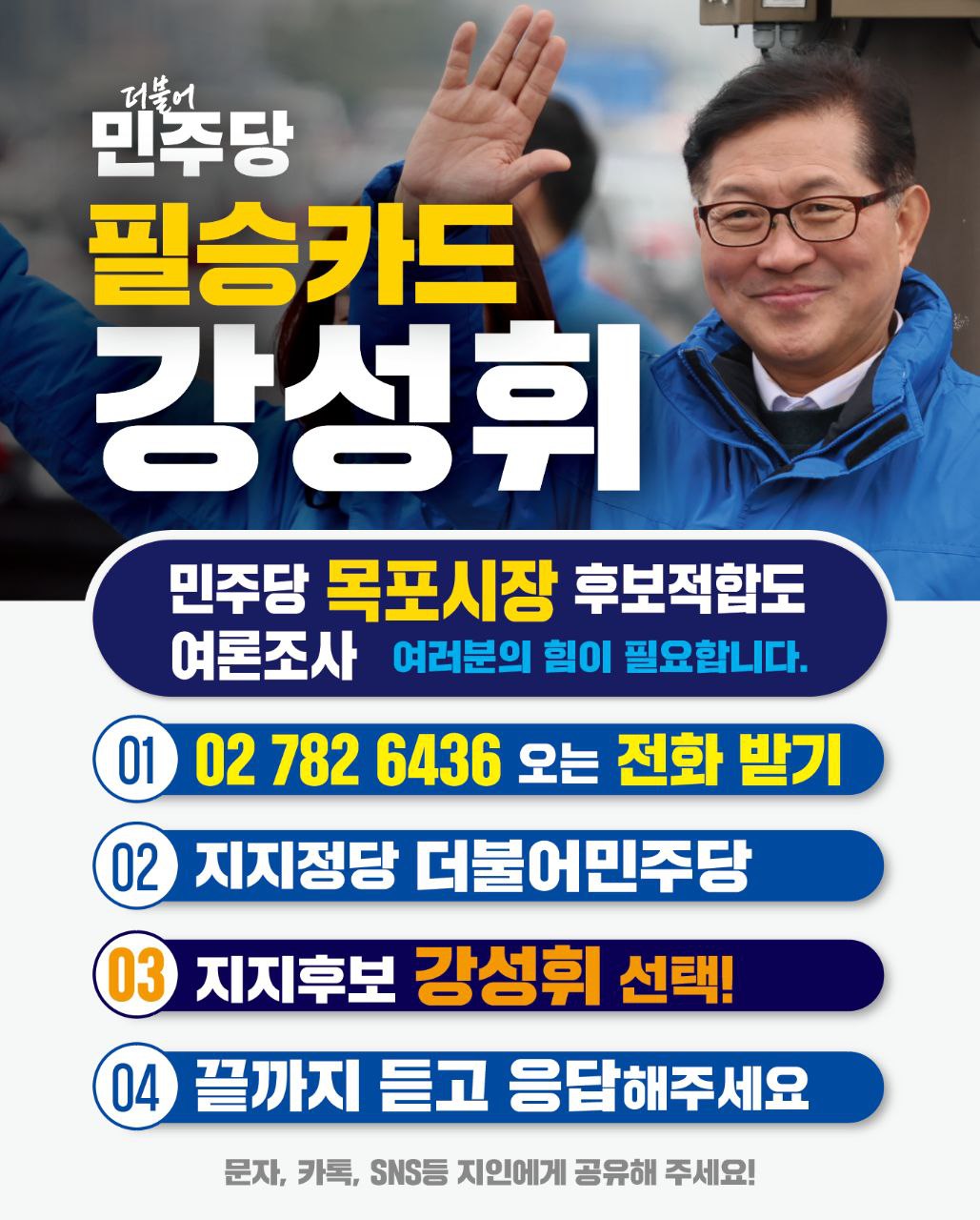 #민주당적합도 #1위후보 #목포시장 #강성휘 #정책위부의장